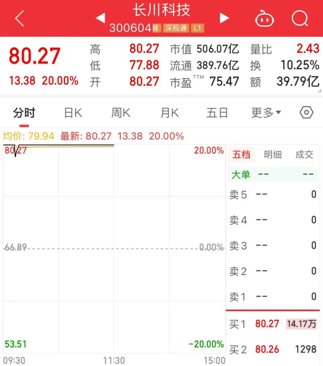 今天上午,半导体测试设备龙头股长川科技迎来“20CM”涨停,股价创历史新高,最新市值为506.07亿元。
