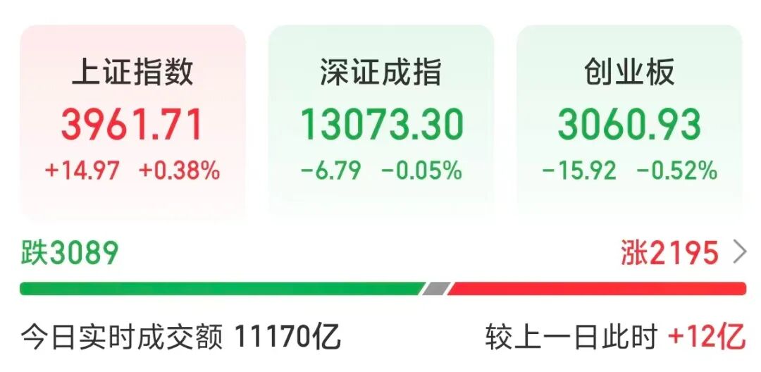 截至上午收盘,上证指数上涨0.38%,深证成指下跌0.05%,创业板指下跌0.52%。市场半日成交额超1.11万亿元。