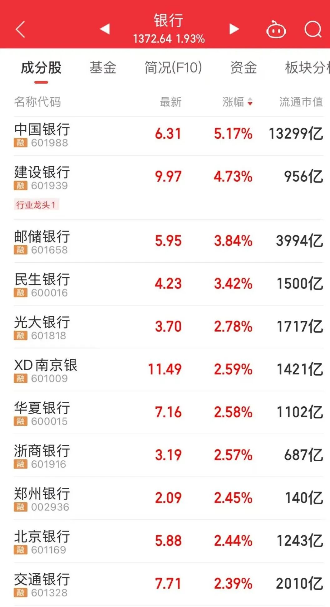 银行板块大涨