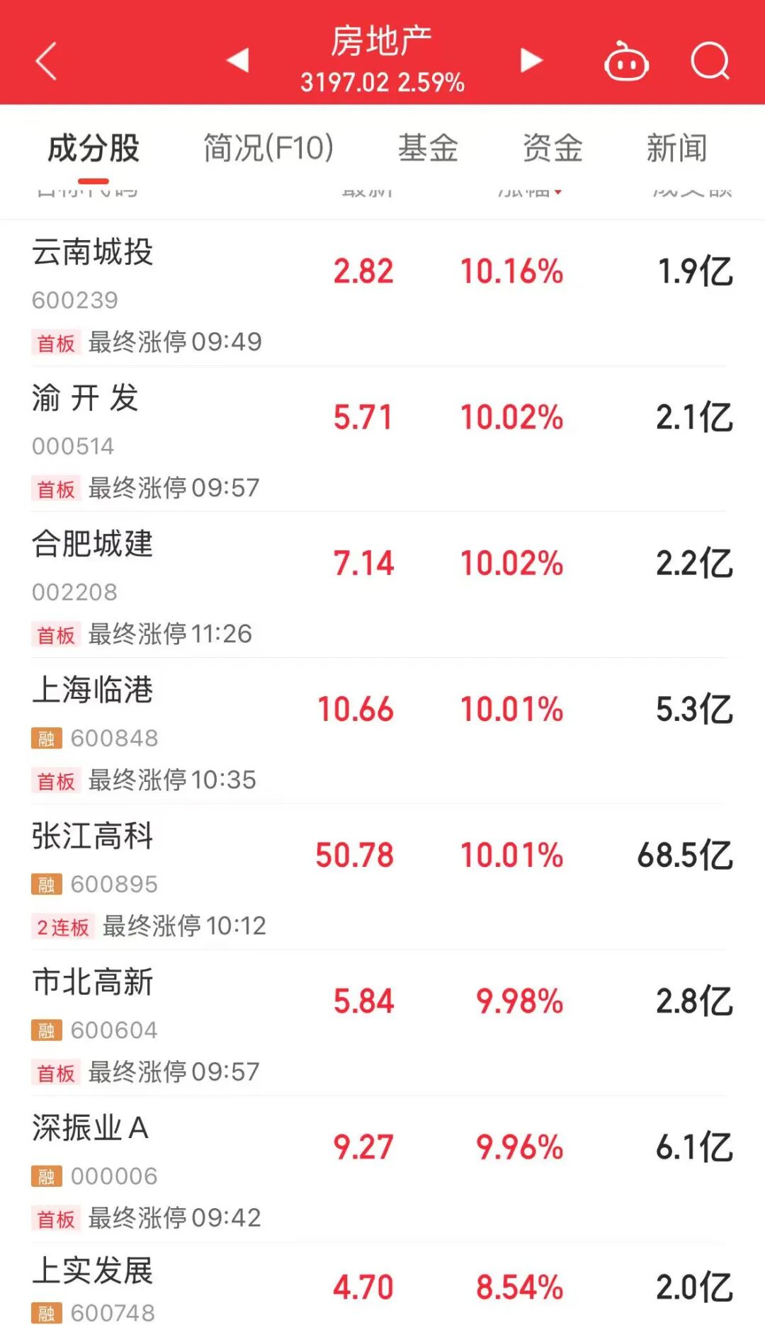 今天上午,地产链表现活跃,房地产开发、租售同权、物业管理等板块上涨,房地产开发板块领涨,渝开发、上海临港等多股涨停。