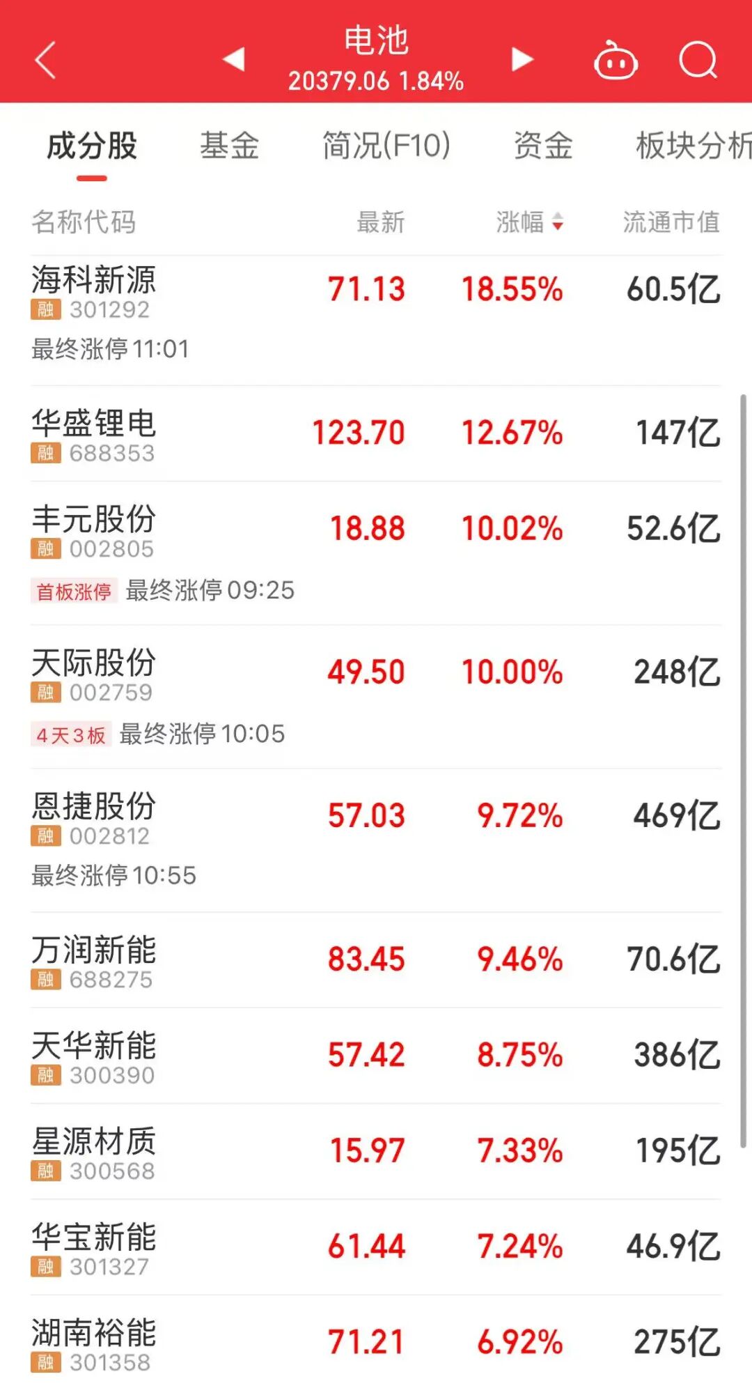 今天上午,新能源赛道上涨,锂电产业链、光伏、储能等板块走强,阳光电源、恩捷股份、比亚迪、多氟多等龙头股上涨。