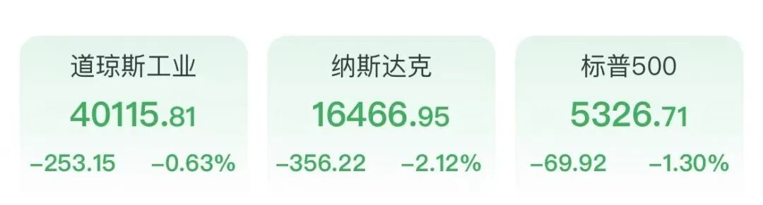 4月16日,美股三大股指全线下跌。Wind数据显示,截至北京时间22:13,美股道指、纳指、标普500指数分别下跌0.63%、2.12%、1.30%。美股芯片股集体重挫,英伟达、AMD、阿斯麦开盘集体跌逾5%;苹果盘初大跳水,跌近3%;黄金股冲高。