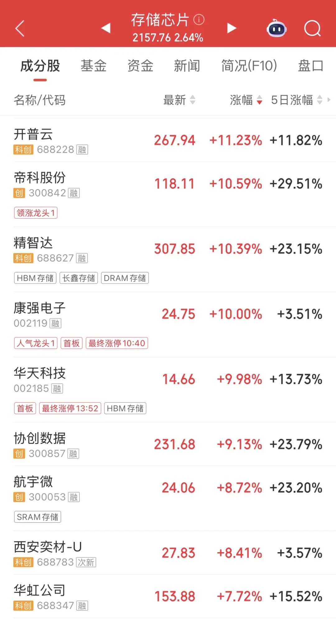 中信建投证券研报称,受AI需求爆发、供给侧收缩等多重因素影响,存储芯片正处于价格上升期,推动全球存储产业链企业迎来业绩爆发。存储产线建设有望进入加速阶段,看好半导体设备、封测等国内存储链投资机遇。
