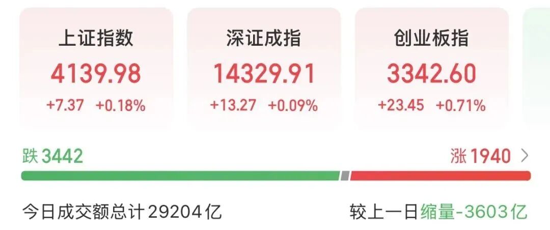 午后,A股三大指数震荡回升,半导体、贵金属、算力硬件等板块涨幅居前。截至收盘,上证指数涨0.18%,深证成指涨0.09%,创业板指涨0.71%。