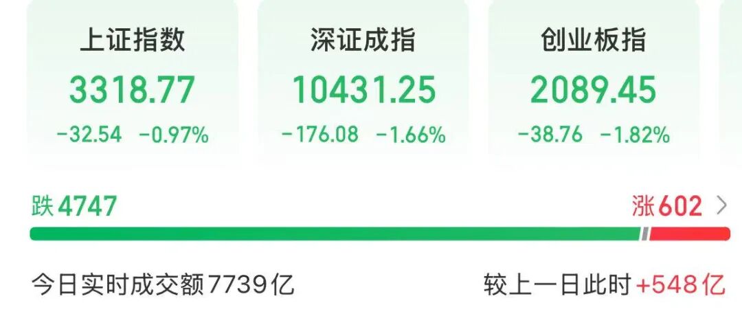 截至上午收盘,上证指数下跌0.97%,深证成指下跌1.66%,创业板指下跌1.82%。