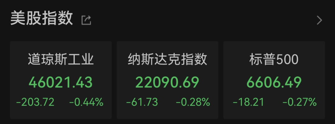 Wind数据显示,当地时间周四(3月19日),美股三大股指小幅收跌。截至收盘,道指跌0.44%报46021.43点,标普500指数跌0.27%报6606.49点,纳指跌0.28%报22090.69点。