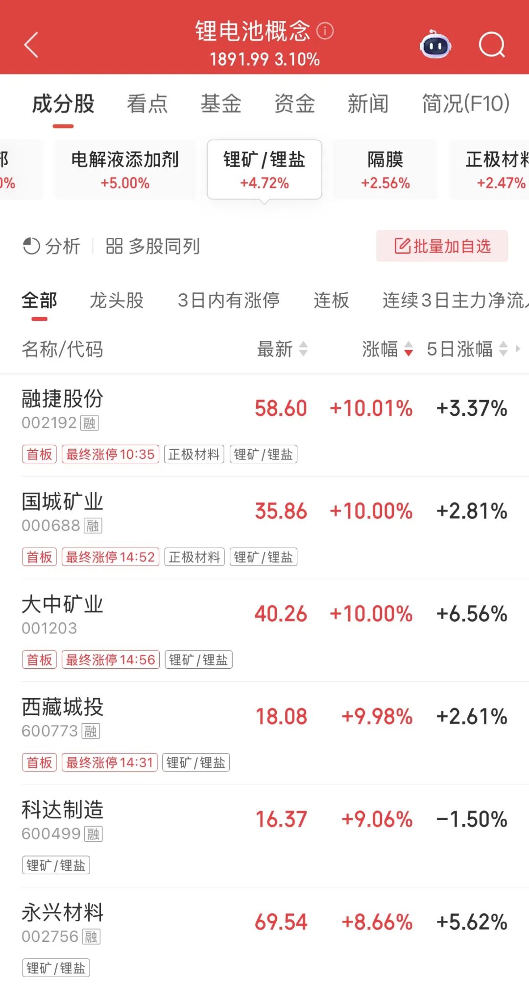 锂矿概念股走强