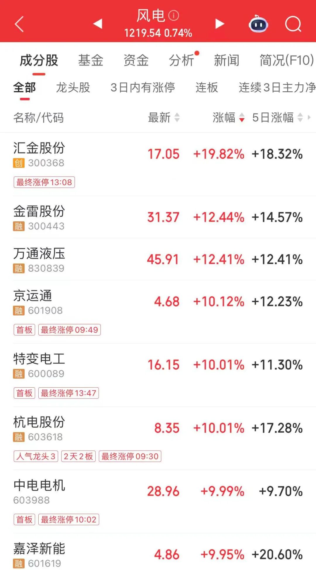 风电设备概念股异动