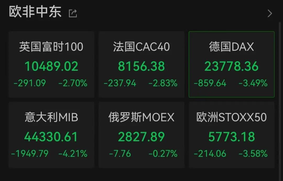 3月3日,受中东局势影响,全球股市普遍承压。在亚太股市多数收跌后,欧洲股市也大幅下挫。截至北京时间21:42,欧洲STOXX50指数跌3.58%,意大利MIB指数跌4.21%,德国DAX指数跌3.49%,英国富时100指数跌2.70%,法国CAC40指数跌2.83%。