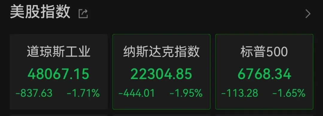 北京时间3月3日晚,美股三大指数集体低开。截至北京时间22:34,道指跌1.71%,纳指跌1.95%,标普500指数跌1.65%。