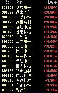 上午盘面出现新变化,成交额排名前20个股中,贵州茅台下跌0.07%,寒武纪下跌0.3%,其余个股全部上涨。另外,这20只个股中,除了国货航、贵州茅台、东方财富、宁德时代,其余股都有AI概念属性。上午收盘,上证指数下跌0.29%,深证成指上涨0.38%,创业板指上涨0.3%。今天上午,AI概念走强,其中,PCB板块爆发,则成电子涨超28%,鼎泰高科、一博科技、逸豪新材等多股迎来20%涨停。另外,液冷服务器、AI PC、超级电容、光模块等板块也上涨。目前,市场的一个主要关注点在英伟达GB300带来的增量机会。据半导体研究和咨询公司SemiAnalysis预计,GB300将在GB200推出的6个月后面世。GB200于2024年四季度少量发货,2025年一季度逐季放量,预计GB300的芯片出货时间在2025年年中,芯片版本更新迭代的速度加快。同时,GB300或将成为Blackwell系列的主力产品。浙商证券表示,GB300升级带来的投资机会,主要体现在光模块、散热、电源、铜连接、测试、PCB等环节。具体看,浙商证券建议关注三大升级方向。一是GB300 Flops计算性能提升了50%,同时内存从8个HBM3E升级到12个。计算性能和内存的提升,带动功耗提升。散热、电源等环节与服务器功耗紧密相关,产品有望升级,用量或将明显增长。散热方面,GB300的设计中水冷板、液冷系统、UQD快速接口的使用量或将明显增加。电源方面,GB300或将升级超级电容和BBU技术,确保在断电等突发情况下,系统能够安全关闭,避免数据丢失。二是GB300的网卡将从CX7升级至CX8,网络规模、性能均得到明显提升。网卡升级对光模块带来两方面影响,一方面是光模块规格升级,1.6T光模块成为GB300的标配;另一方面是组网规模扩大,网络在AI投资的占比或将提升。当前,海外头部厂商正在着力打造十万卡、甚至百万卡集群,网络的层数和复杂度提升,将带来网络投资的指数增长。三是GB300增加了内存模组和GPU socket,使得组装和替换更加灵活。这种模块化设计不仅提高了系统的可维护性,还为未来的定制化提供了更多可能性。同时,随着机柜设计日益成熟,GB300有望在液冷、PCB、连接器等环节引入更多的供应商。另外,最近科技巨头纷纷加大数据中心投资,推动AI产业发展。据报道,亚马逊云计算部门亚马逊网络服务(AWS)计划在佐治亚州投资至少110亿美元,以扩大其基础设施,并支持各种云计算和人工智能技术。微软也表示2025财年AI数据中心开支将达800亿美元。1月8日,美光科技在新加坡的新工厂破土动工,未来将投资70亿美元,于2026年开始运营,并从2027年开始扩大美光的先进封装总产能。该类芯片广泛应用于人工智能数据中心,受益于人工智能对先进存储芯片的需求提振。今天上午,互联网电商板块上涨,凯淳股份迎来20%涨停,跨境通、国联股份等个股上涨。继微信推出礼物功能后,淘宝近日也上线了“送礼物”功能。淘宝客服表示,目前该功能的部分订单支持微信支付,但礼物领取为24小时内有效,超时礼物自动失效。此外,据媒体报道,目前抖音也能赠送商品礼物,并支持向好友赠送本地生活团购和电商等两大领域的部分商品。抖音电商相关负责人称,抖音电商于2023年就上线了“替家人”“朋友购物”的功能。业内人士表示,“送礼物”功能有望成为继7年前微信红包之后的又一爆款,它不仅有望为平台开辟新的流量入口,还能带动平台内的电商产业链、服务商、商家和导购平台等各方共同发展。国泰君安表示,微信红包经验显示,“送礼物”功能有望助力微信电商发展。具备礼品属性的零食、美妆品类,以及对渠道变化敏感度较高的代运营板块有望受益。
