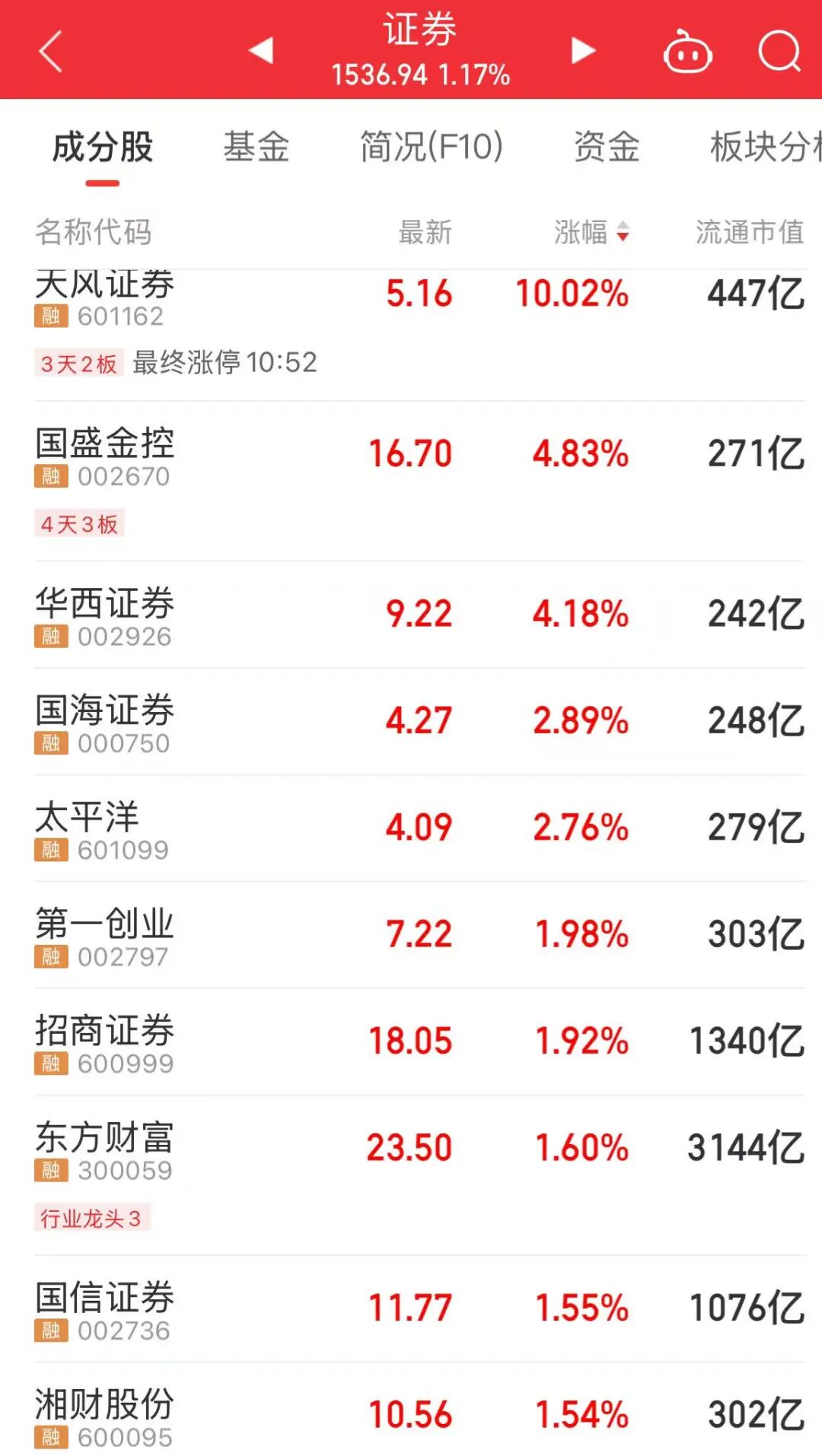 证券板块中,天风证券涨停,华西证券、国盛金控等个股大涨。综合市场各方观点,证券板块有以下几方面催化: