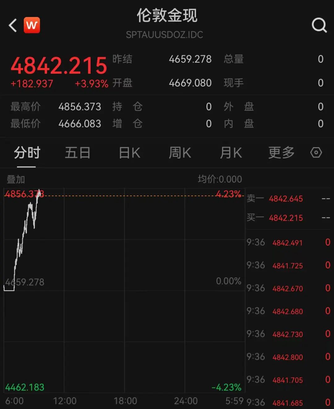 贵金属方面,现货黄金、现货白银均大幅反弹,现货黄金盘中突破4800美元/盎司关口。