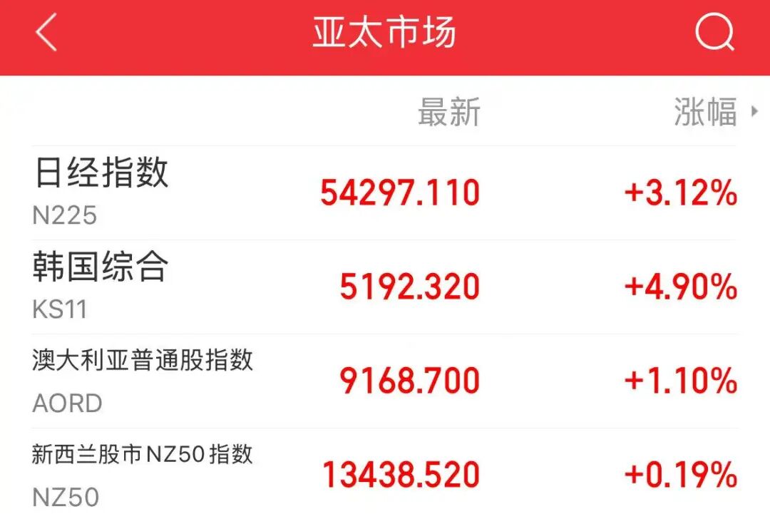 2月3日早盘,亚太股市普涨,据央视新闻,韩国综合股价指数2月3日开盘后迅速攀升,触发熔断机制。此前一天,韩国股市遭遇重挫,主要股指韩国综合股价指数大幅下跌超5%,触发熔断机制,暂停交易5分钟。