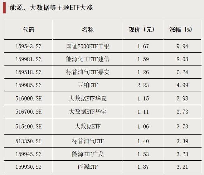 能源、大数据等主题ETF走强