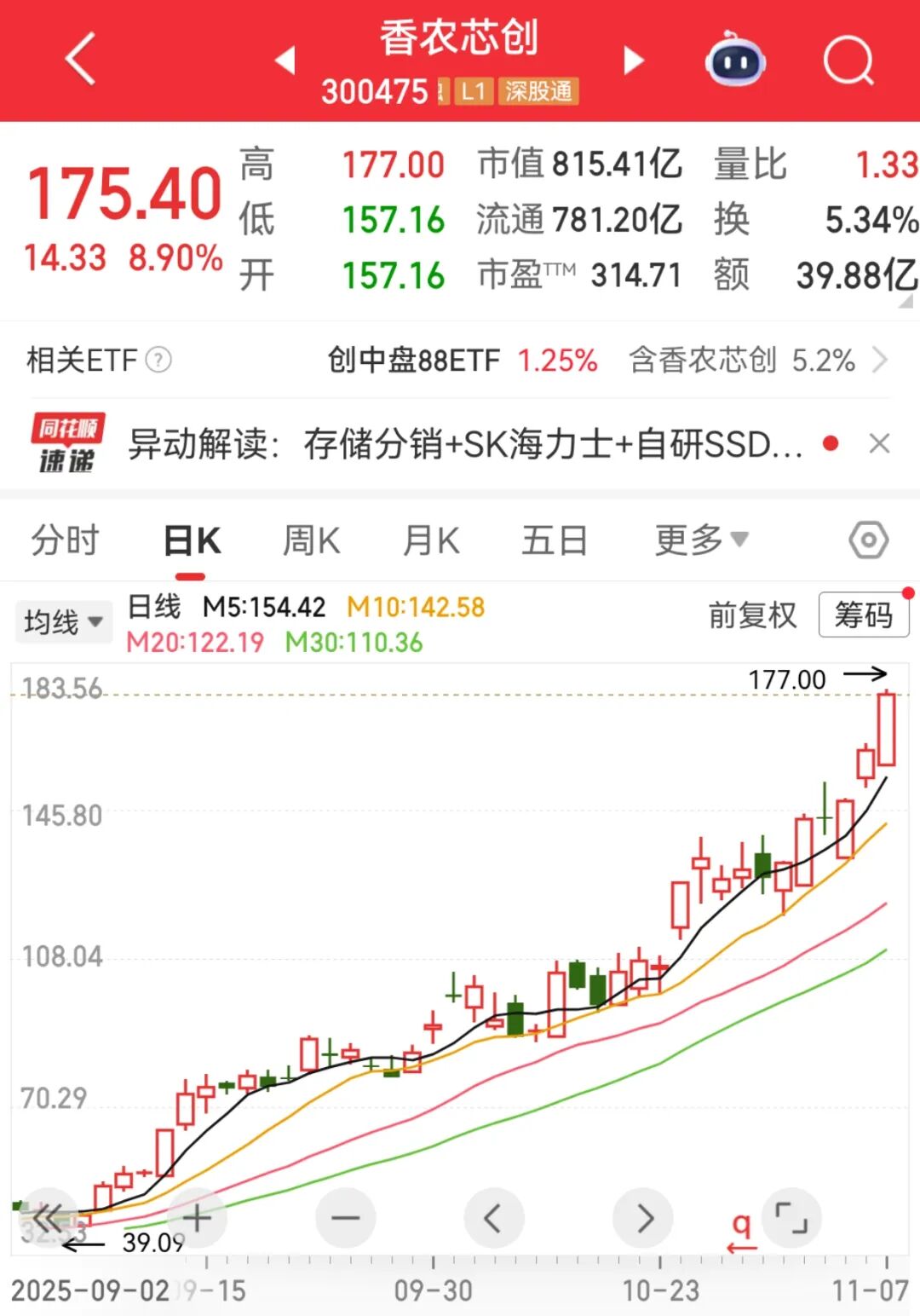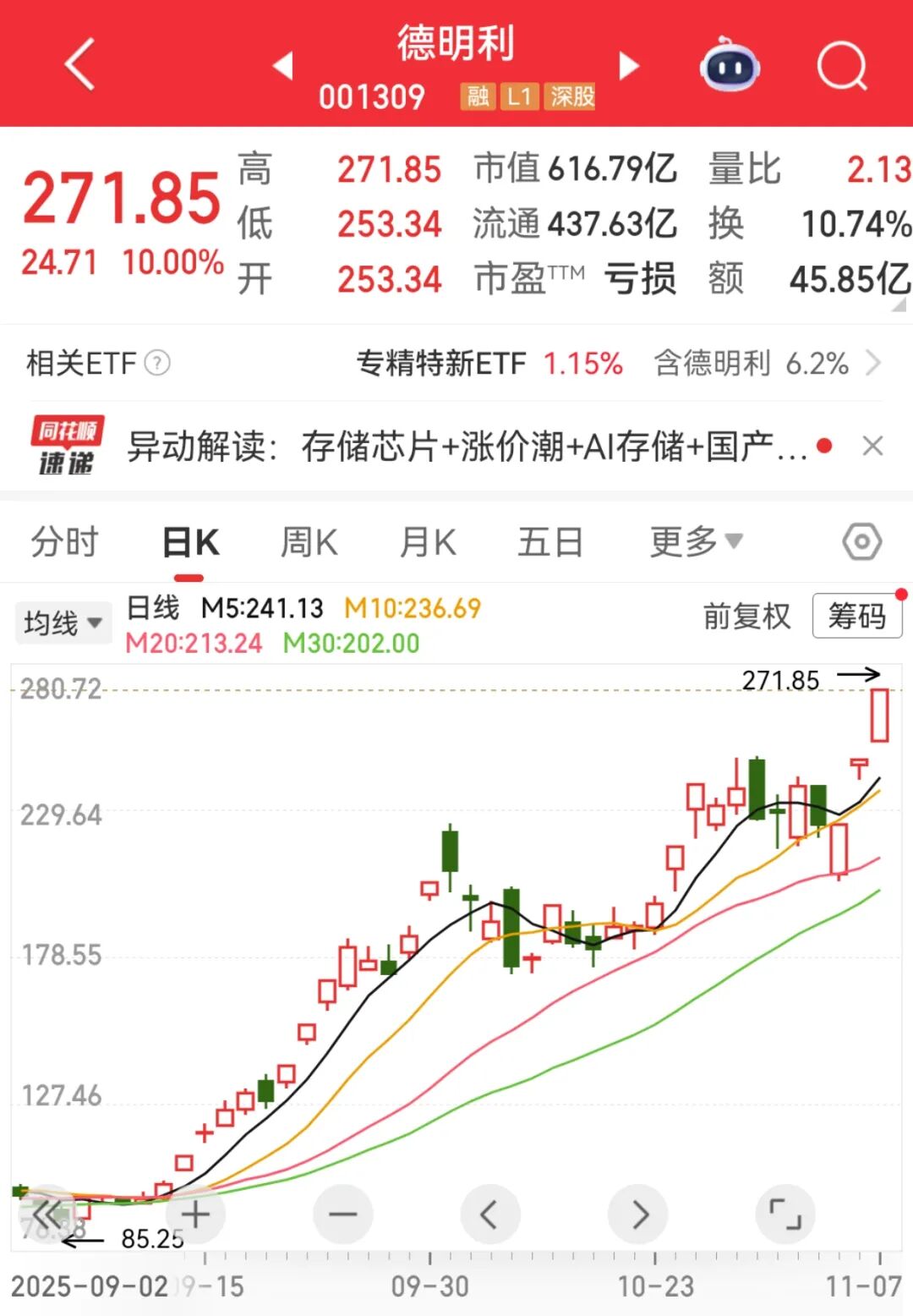 个股方面,作为存储芯片两大龙头股,德明利涨停,香农芯创涨近9%,盘中股价均创历史新高。