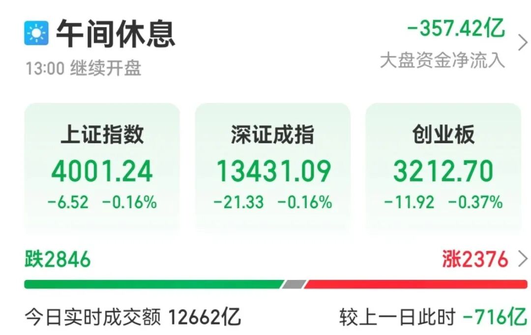 截至上午收盘,上证指数下跌0.16%,深证成指下跌0.16%,创业板指下跌0.37%。