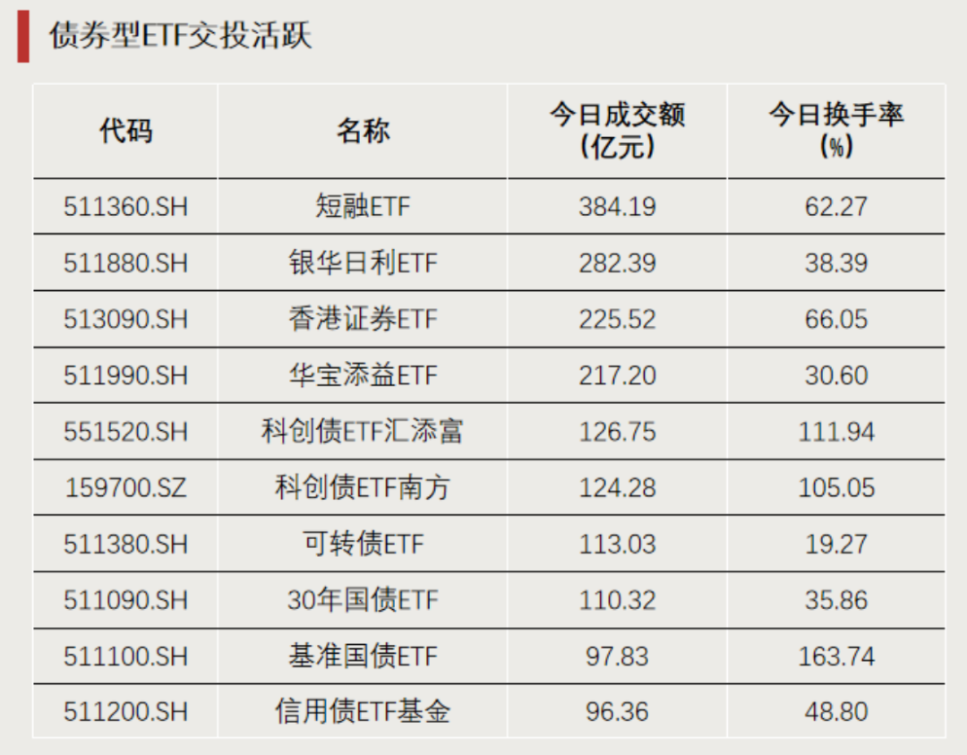 此外,多只债券型ETF交投活跃,短融ETF(511360)10月21日成交额高达384.19亿元,位居全市场ETF之首。