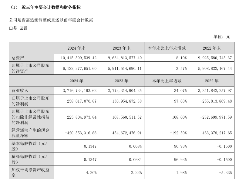 2024年,露笑科技实现营业收入37.17亿元,同比增长34.07%;实现归属于上市公司股东的净利润约2.58亿元,同比增长97.03%。