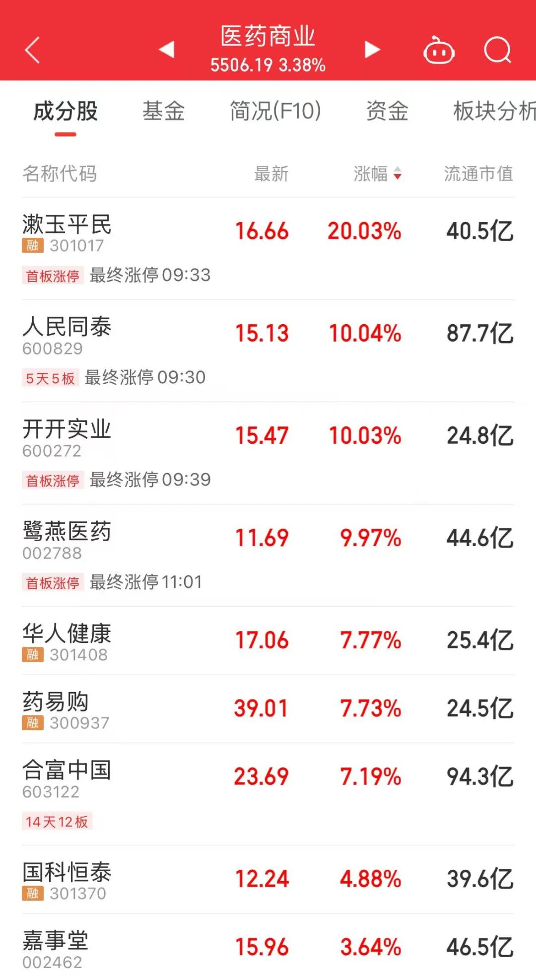 今天上午,医药股走强,医药商业、流感、医药电商、创新药等板块涨幅居前。