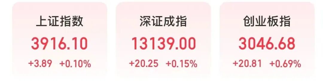 截至午间收盘,上证指数上涨0.1%,深证成指上涨0.15%,创业板指上涨0.69%。