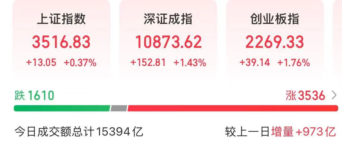 截至收盘,上证指数上涨0.37%,深证成指上涨1.43%,创业板指上涨1.76%。