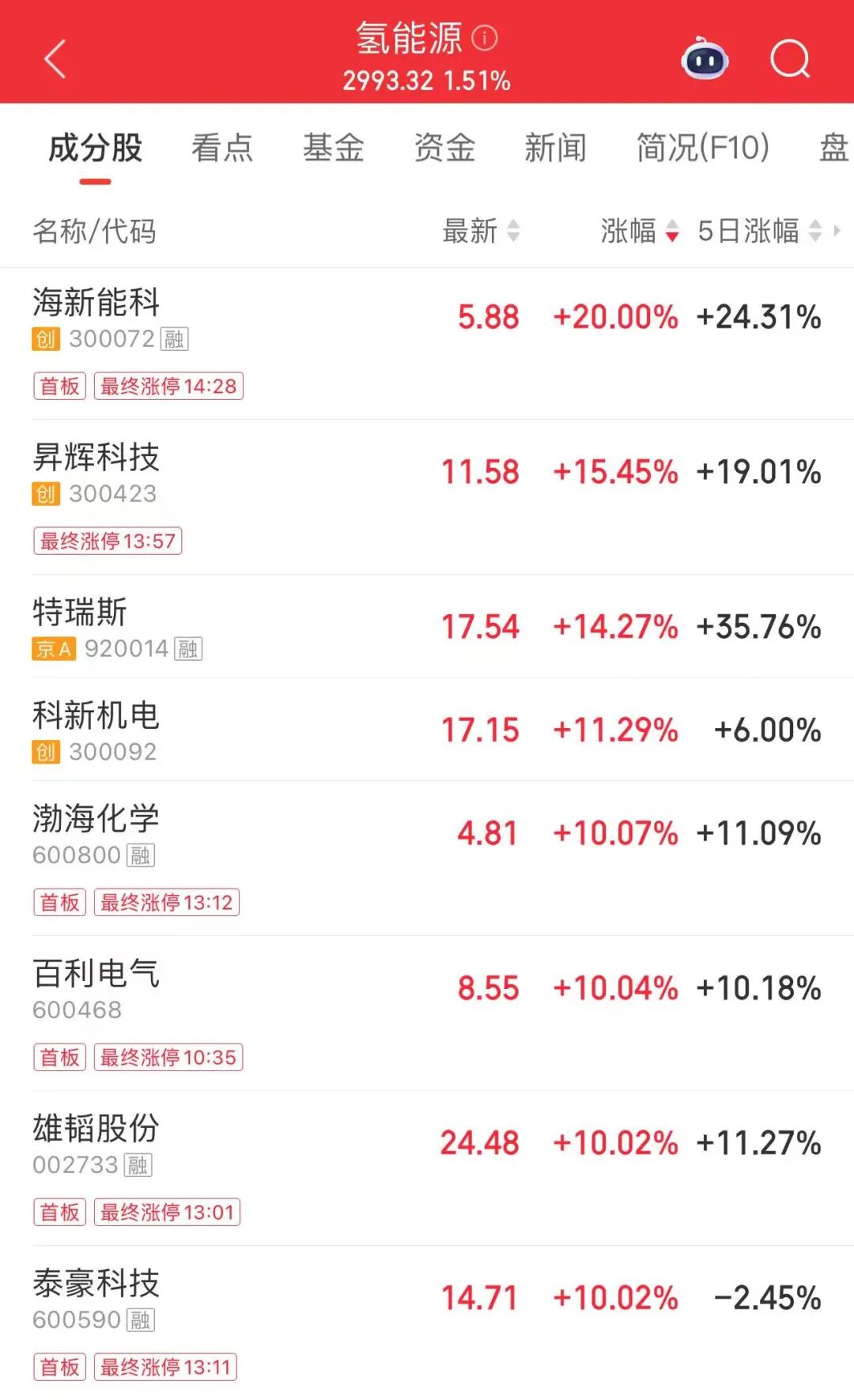 新能源产业链活跃,氢能源、生物质能发电板块走强。