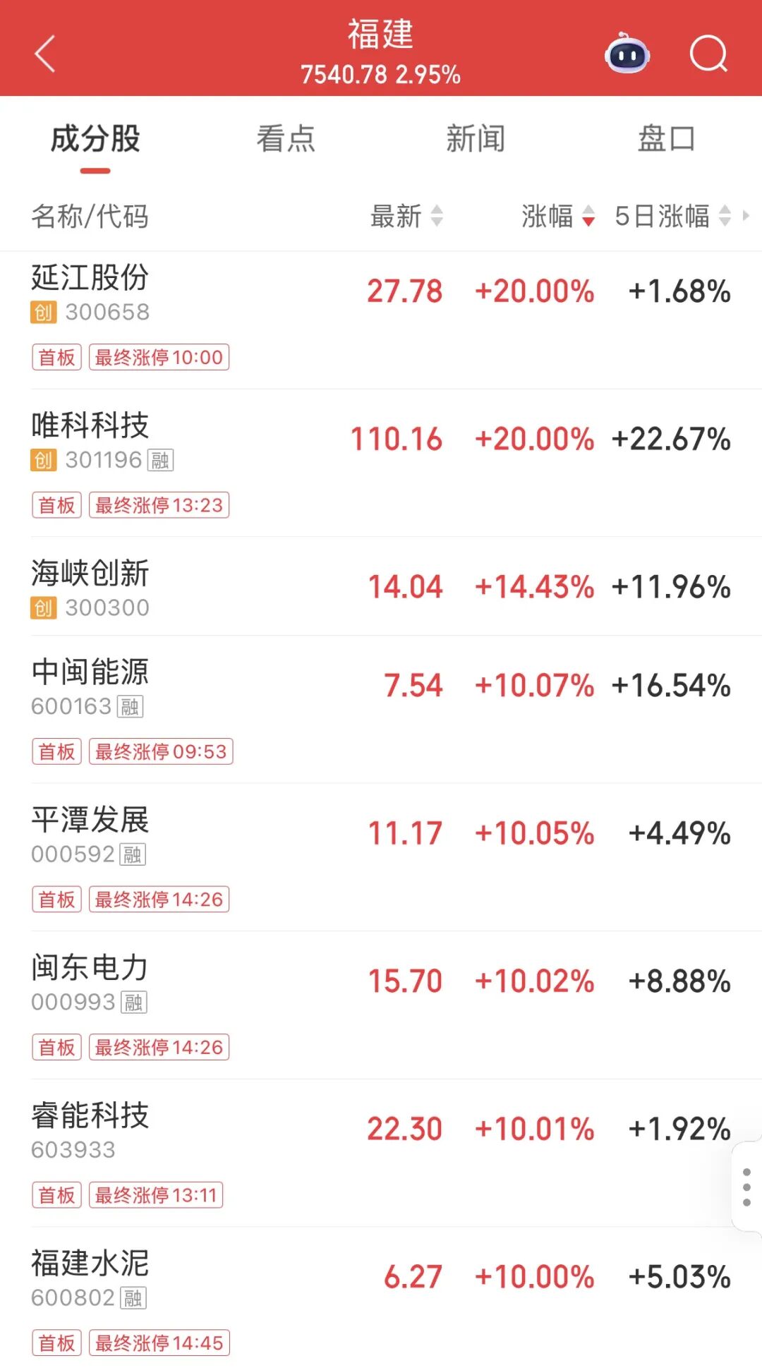 临近尾盘,福建板块异动拉升,板块内多只能源、电力股涨停,延江股份等多股涨停。
