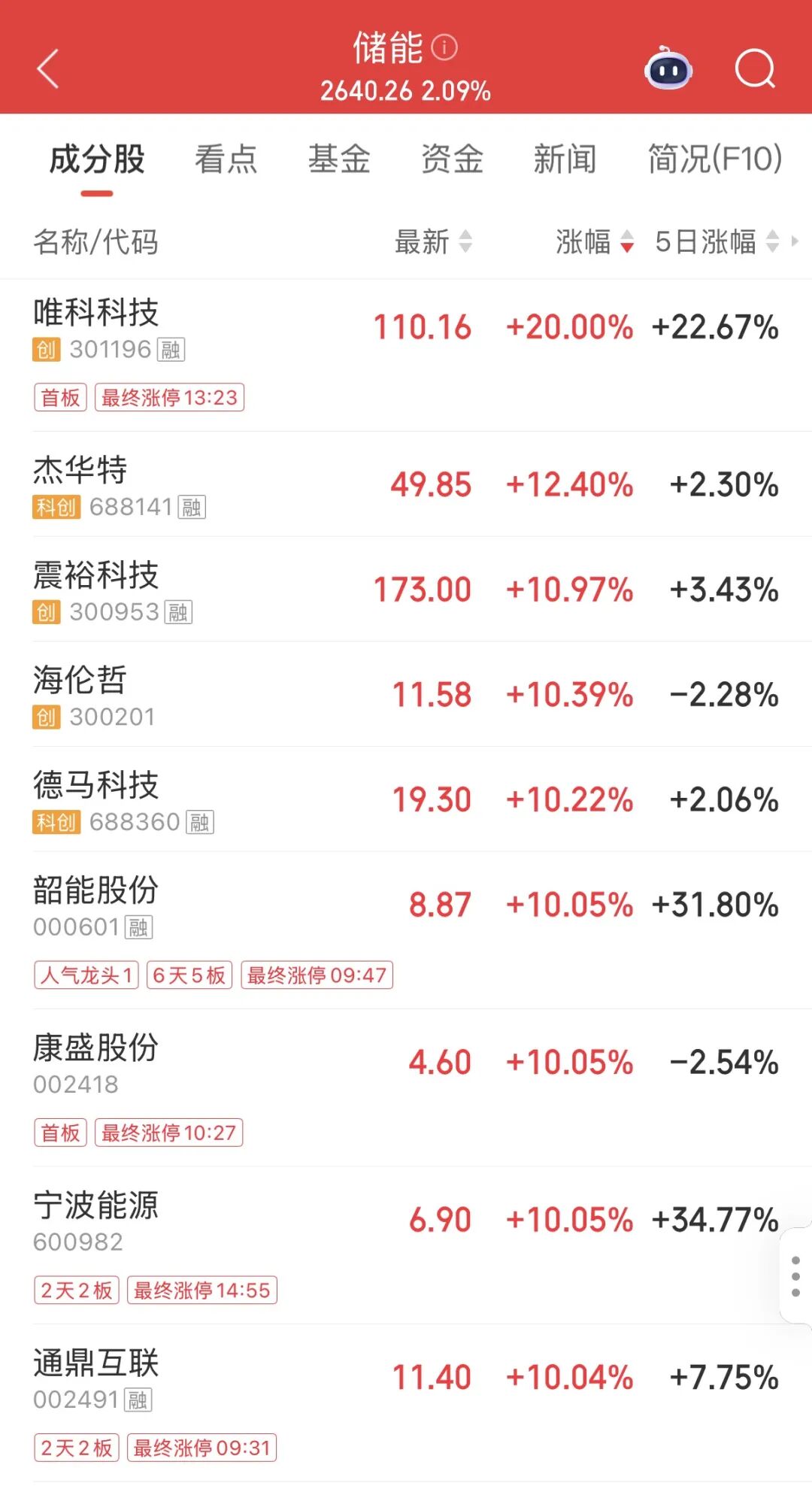 储能概念股活跃