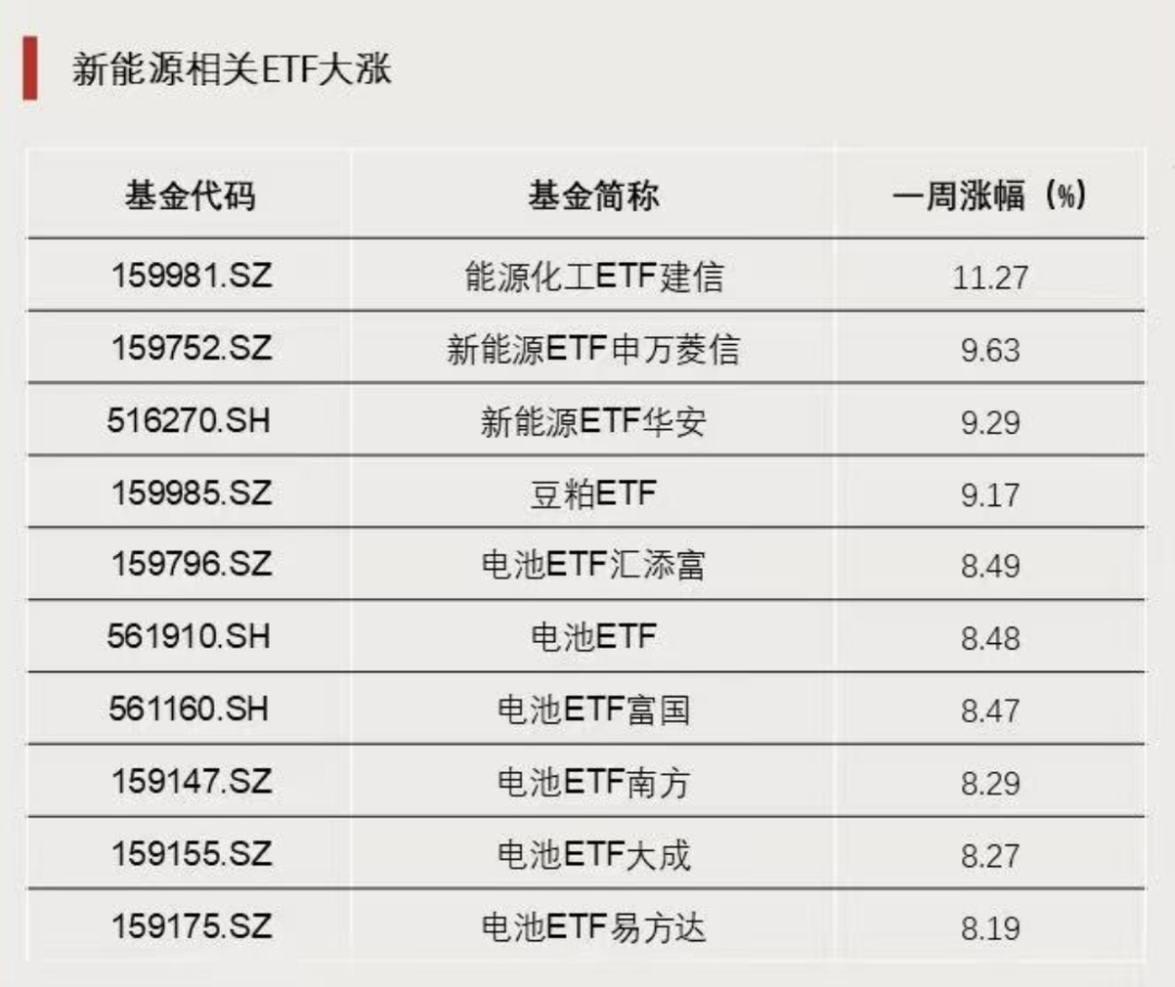 新能源相关ETF涨幅居前