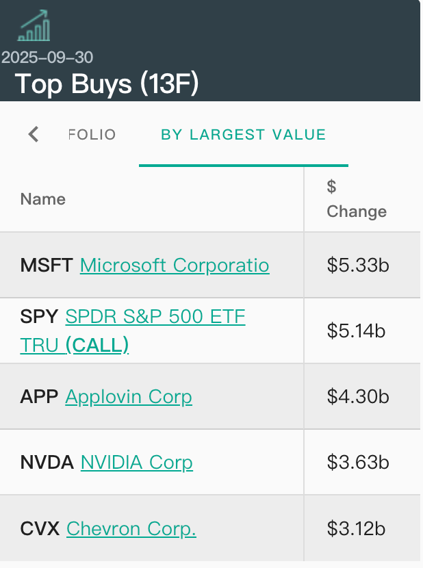 当地时间11月13日,美国资管巨头三季度持仓报告陆续出炉。贝莱德最新披露的13F文件显示,按市值计算,该公司三季度增持最多的标的为微软,其次为标普500ETF(SPY)看涨期权。英伟达和雪佛龙同样获得大幅增持。