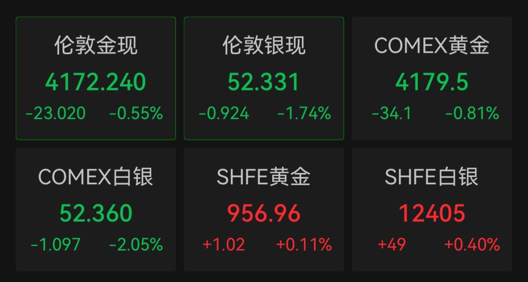 贵金属方面,Wind数据显示,截至北京时间11月14日5时48分,伦敦金现货价格跌0.55%,报4172.24美元/盎司;COMEX黄金期货价格跌0.81%,报4179.5美元/盎司。