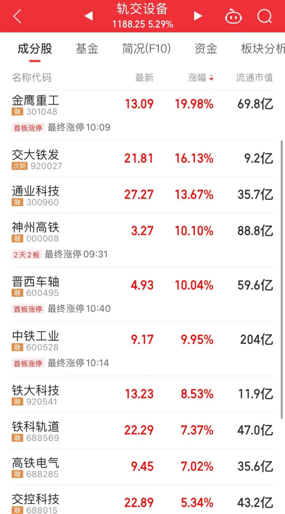 今天上午,顺周期板块表现活跃,轨交设备、工程机械等基建类个股领涨。在白酒板块带动下,大消费走强,保险、银行等金融板块上涨。汽车整车板块上涨。