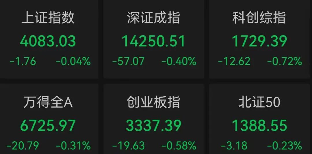 截至上午收盘,上证指数下跌0.04%,深证成指下跌0.4%,创业板指下跌0.58%,科创综指下跌0.72%。