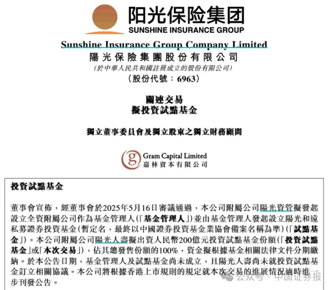 险资入市再提速!阳光保险拟设立私募证券投资基金,总规模200亿元