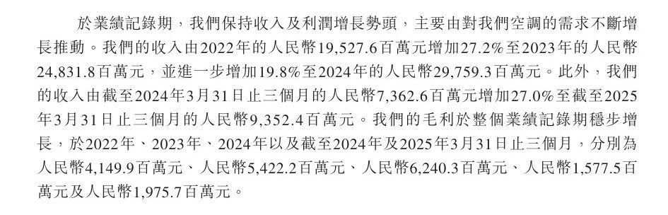 招股书显示,公司的收入主要来自产品销售,包括家用空调及中央空调,另外部分收入来自原材料销售、品牌授权费及物业租赁等其他业务。公司空调业务覆盖150多个国家和地区。