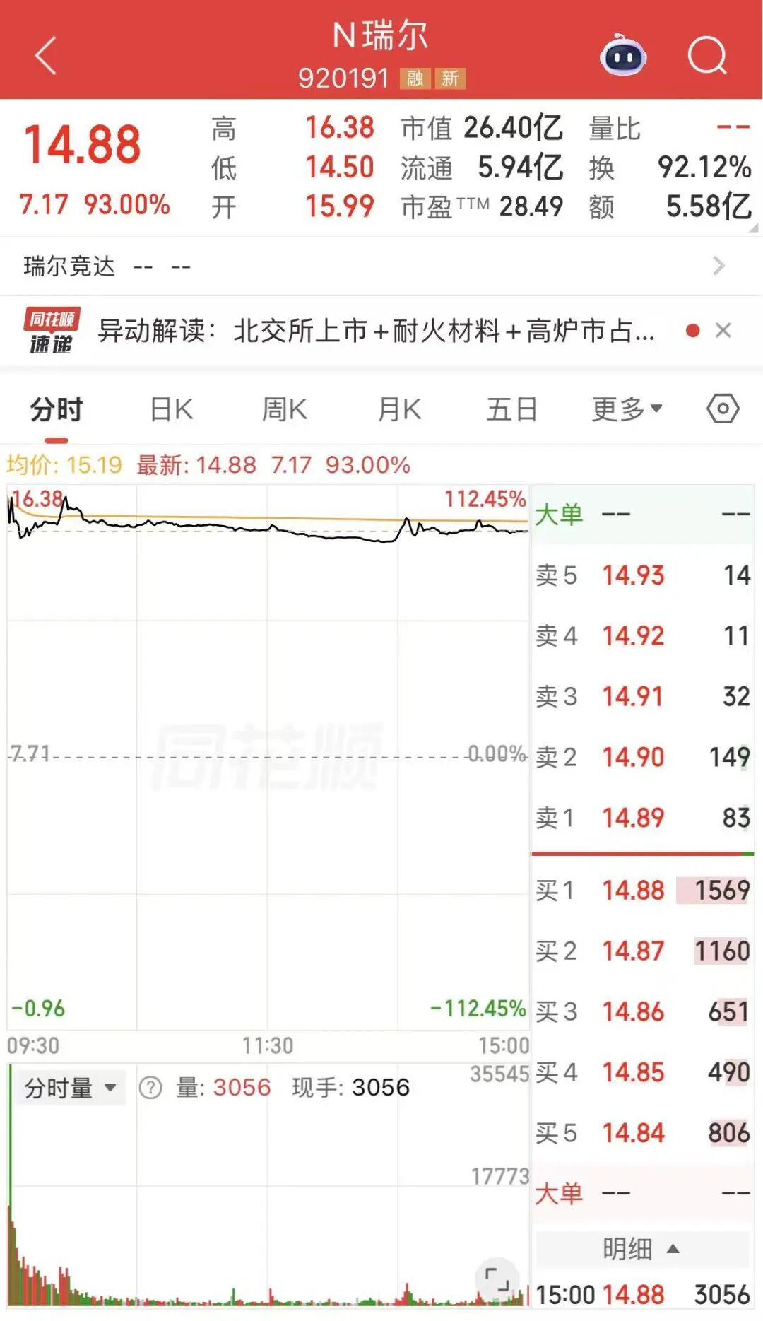 上市首日大涨93%,瑞尔竞达登陆北交所