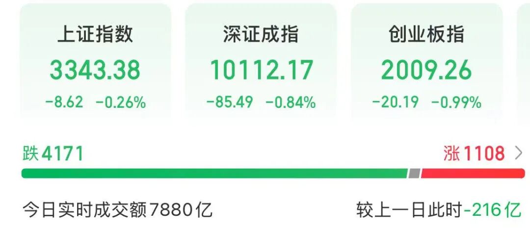 上午收盘,上证指数下跌0.26%,深证成指下跌0.84%,创业板指下跌0.99%。