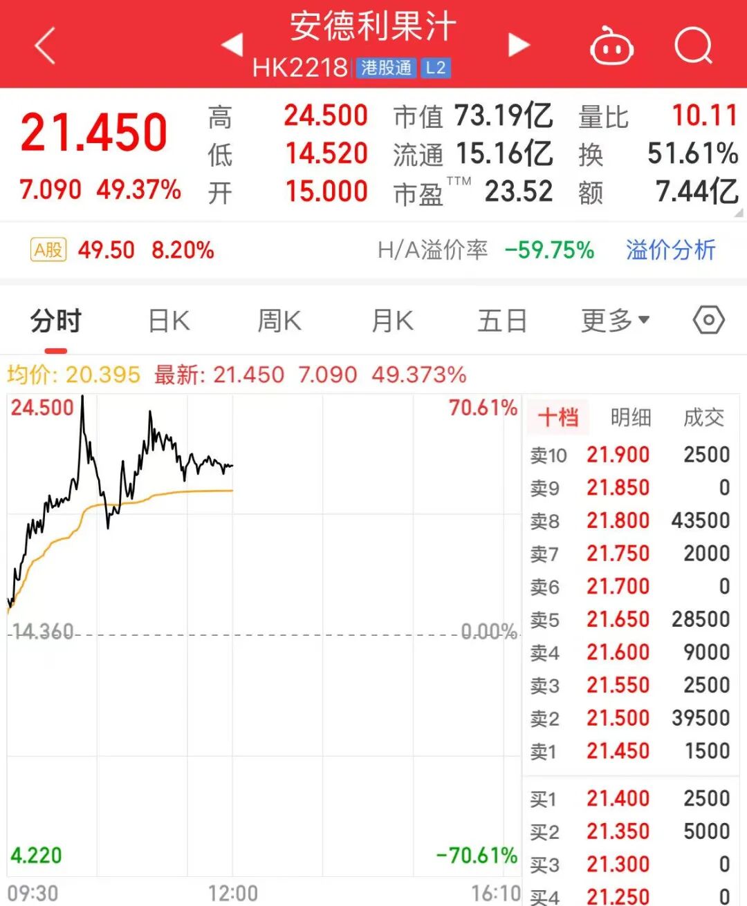 今天上午,大消费走强,纺织制造、美容护理等板块大涨,饮料制造、食品加工等板块表现活跃。港股方面,安德利果汁上午上涨49.37%,统一企业中国、蜜雪集团等个股上涨。