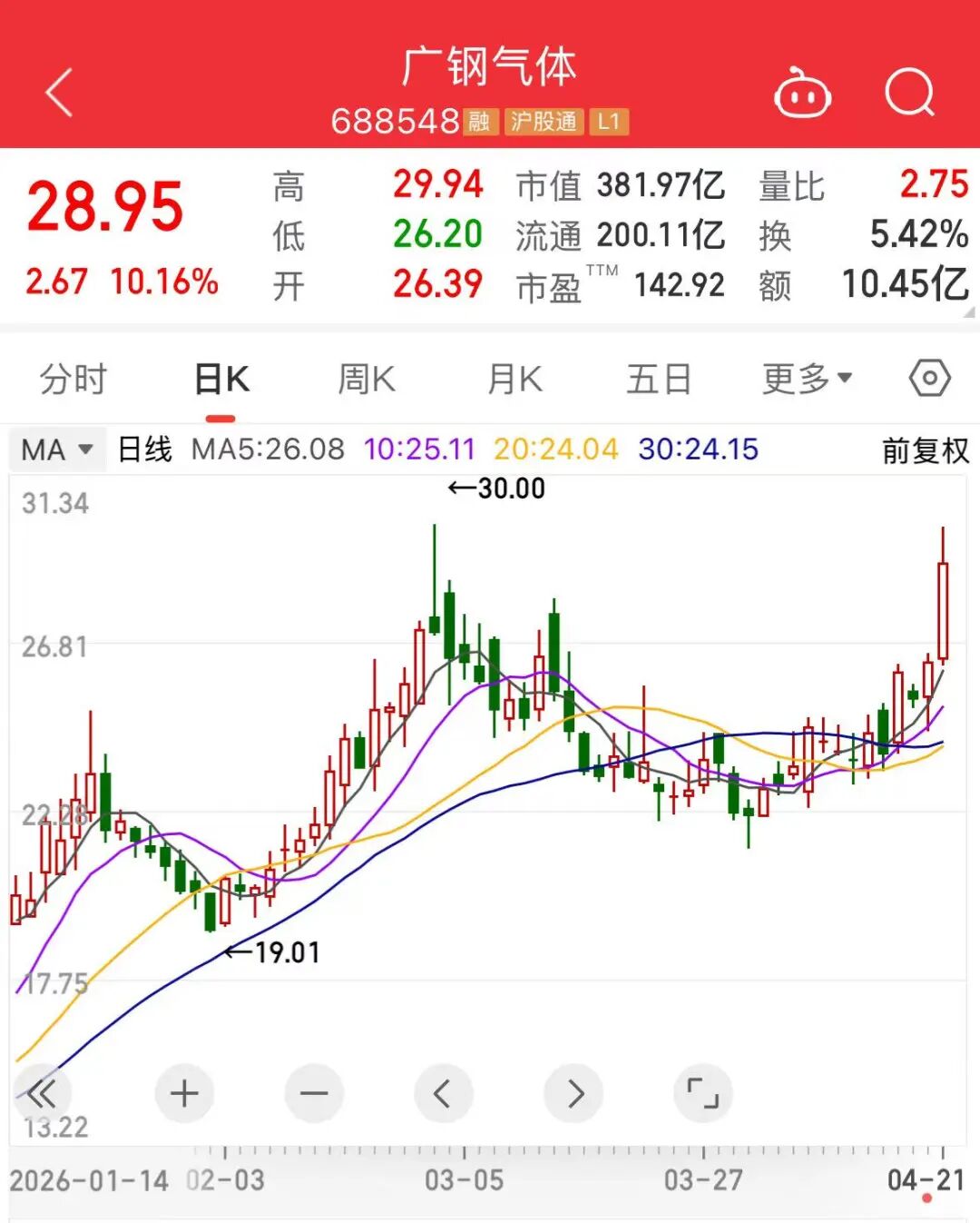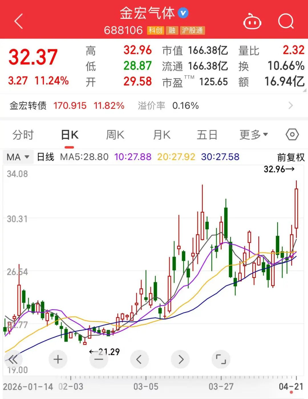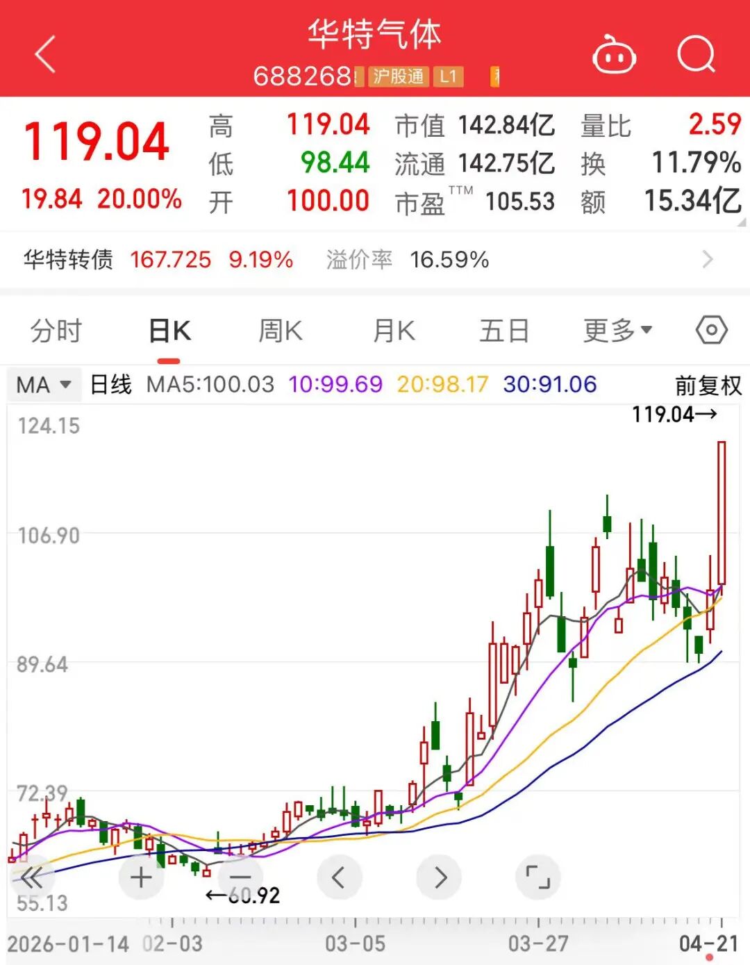 随着供给端不断出现扰动,今天上午,工业气体概念再度大涨,三大龙头股华特气体、金宏气体、广钢气体集体大涨,其中,华特气体迎来“20CM”涨停。
