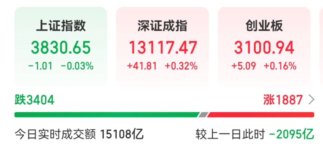 上午收盘,上证指数下跌0.03%,深证成指上涨0.32%,创业板指上涨0.16%。
