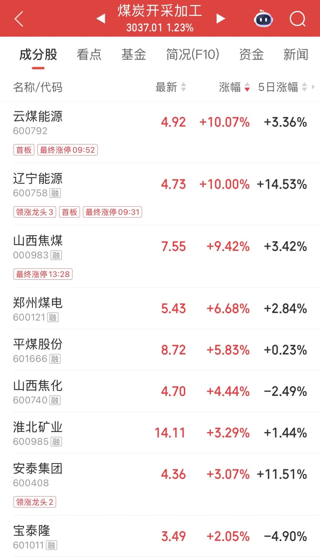 今天,煤炭和油气股逆势活跃。同花顺数据显示,截至收盘,仅煤炭开采加工板块涨超1%,油气开采及服务板块涨近1%,其余板块均下跌。云煤能源、辽宁能源涨停。