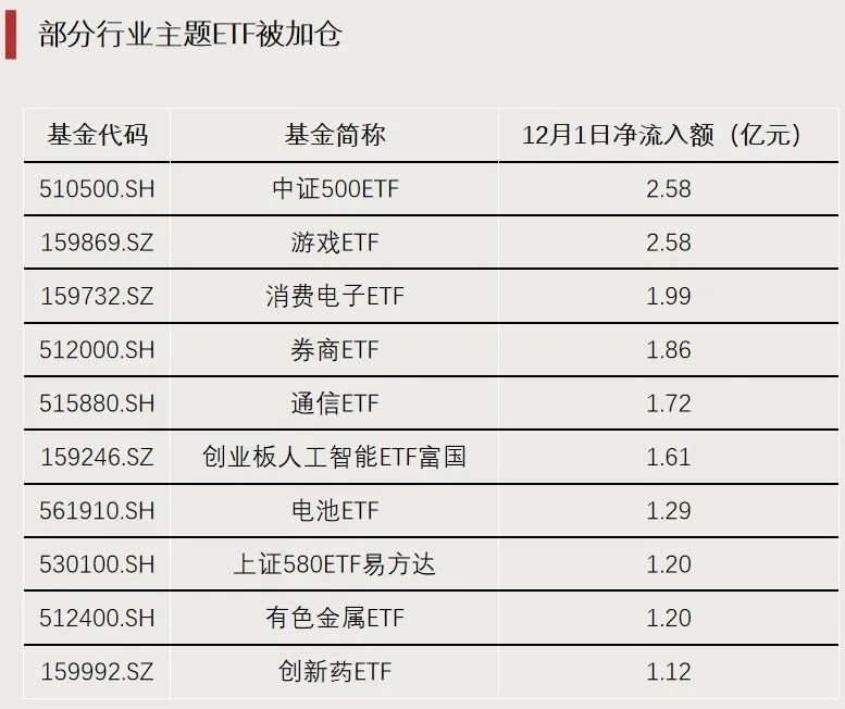 12月1日,A股ETF出现近百亿资金净流出,其中,宽基主题ETF资金净流出较多。