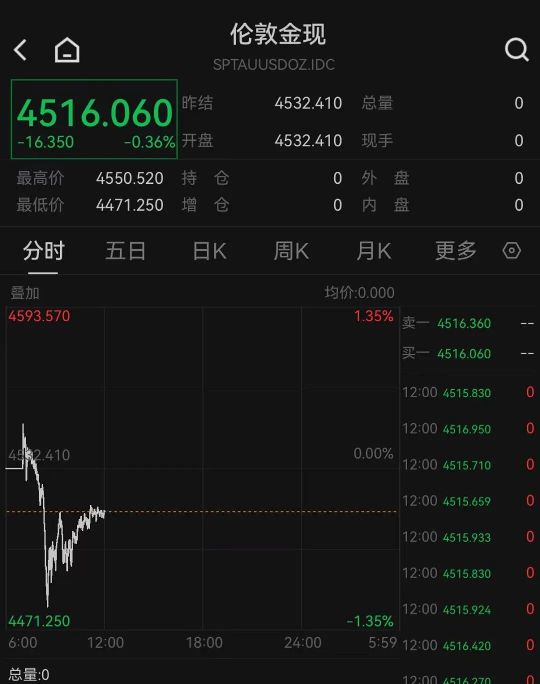 伦敦现货黄金一度升至4500美元/盎司上方,最高至4550.52美元/盎司,随后震荡下跌,一度跌破4500美元/盎司关口,最低至4471.25美元/盎司,较日内最高点位跌近80美元/盎司。截至北京时间12月29日12:00,报4516.06美元/盎司,跌0.36%。
