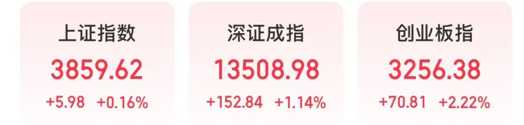 上午收盘,上证指数上涨0.16%,深证成指上涨1.14%,创业板指上涨2.22%。