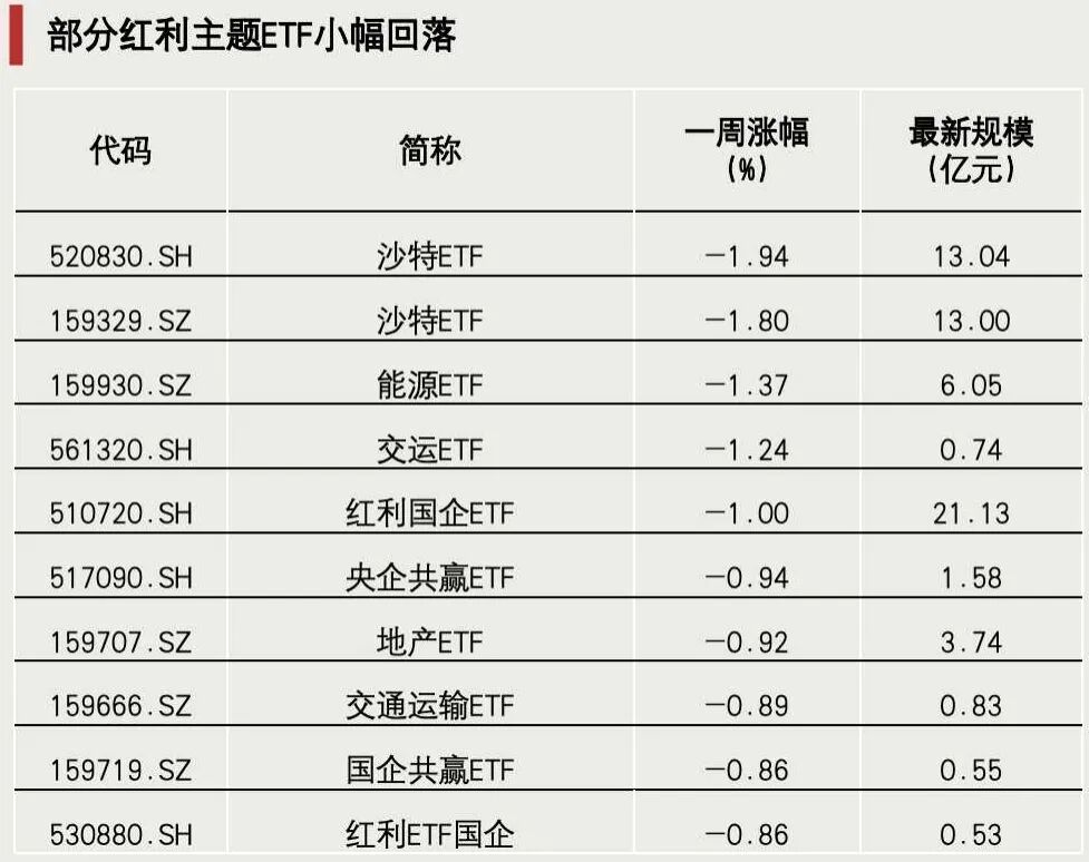 上周,以算力为首的人工智能板块在波动中依然保持强劲势头,中际旭创、新易盛、东山精密、中兴通讯等板块龙头股上周涨幅都在10%以上,多只通信、创业板人工智能主题ETF涨超8%。 此外,上周大涨的部分美股生物科技主题ETF溢价率飙升,最新溢价率都在5%以上,创下了上市以来的历史新高。 在成长风格走强的情况下,上周部分能源、交运以及国企红利等主题ETF小幅回落。此外,沙特ETF等跨境品种也出现回调。 上周,A股市场迎来反弹。在此过程中,宽基ETF成为资金交易的热点。 其中,A500ETF易方达(159361)等跟踪中证A500指数的ETF上周合计成交额超1300亿元,领先于其他股票指数;沪深300ETF易方达(510310)等跟踪沪深300指数的ETF以及科创板50ETF(588080)等跟踪科创50指数的ETF上周成交额都在300亿元以上。 此外,近期港股热门品种交投活跃,恒生科技ETF易方达(513010)等跟踪恒生科技的ETF合计成交额突破700亿元。单品方面,香港证券ETF(513090)成交额突破330亿元,位居股票型ETF首位;另有多只港股创新药主题ETF场内交易表现也较为活跃。 资金关注港股科技、红利板块 在近期震荡的行情下,以上证50为代表的核心资产迎来增量资金,跟踪上证50指数的ETF上周合计净流入超25亿元。 此外,港股科技板块近期持续有资金流入,恒生科技ETF易方达(513010)等跟踪恒生科技指数的ETF上周合计净流入近20亿元;港股红利主题ETF也受到资金关注,恒生红利低波ETF(159545)上周净流入超7亿元,最新规模突破60亿元,创历史新高。 ETF动向 沪深300等宽基指数调整指数样本