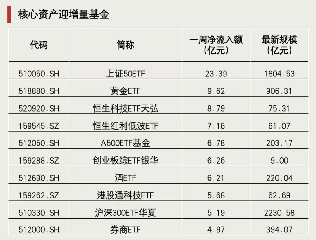 近期,核心资产迎来增量资金,跟踪上证50的ETF上周合计净流入超25亿元。此外,港股科技、红利等主题ETF也受到资金关注,恒生红利低波ETF(159545)上周净流入超7亿元,最新规模突破60亿元,创历史新高。
