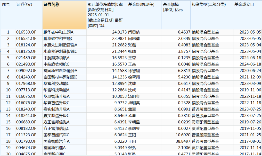 1月20日,人形机器人概念股持续活跃,AI应用领域是资金追捧方向。记者发现,重仓机器人板块的基金净值近期表现出色,领跑产品2025年以来收益率已达24%。Wind数据显示,截至1月17日,2025年以来14只机器人概念主题基金(A/C份额未合并)收益率超过8%,更有4只产品收益率超过20%。